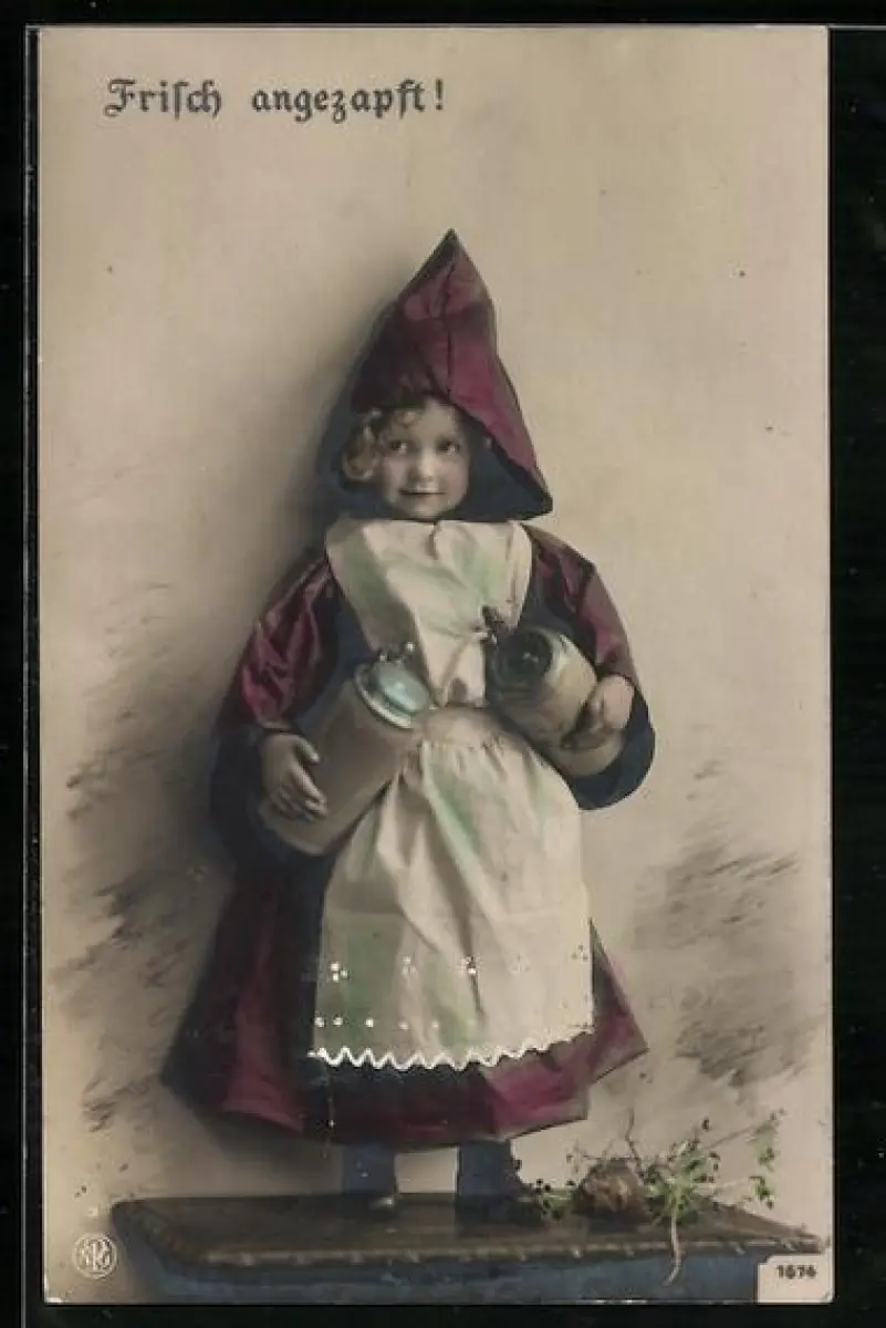 AK Münchner Kindl mit zwei grossen Bierkrügen