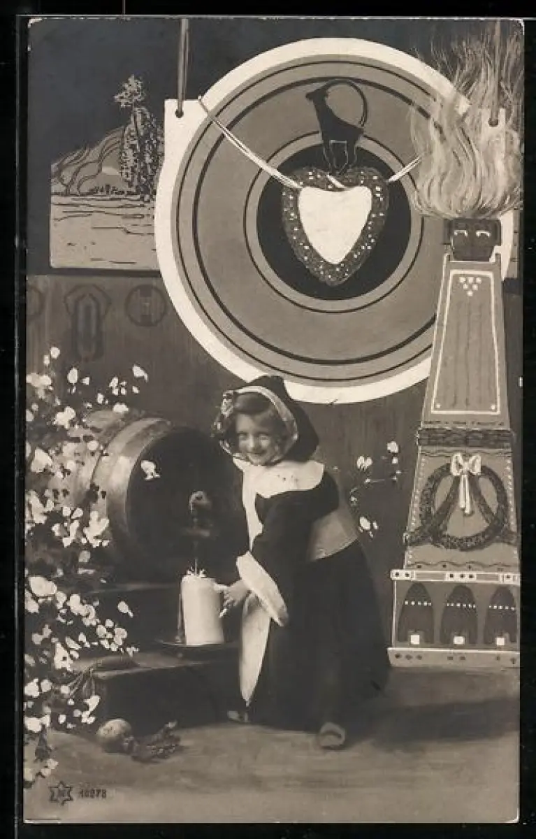 AK Münchner Kindl zapft Bier vom Fass