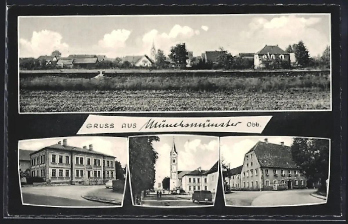 AK Münchsmünster /Obb., Ortsansicht, Strassenpartien und Kirche