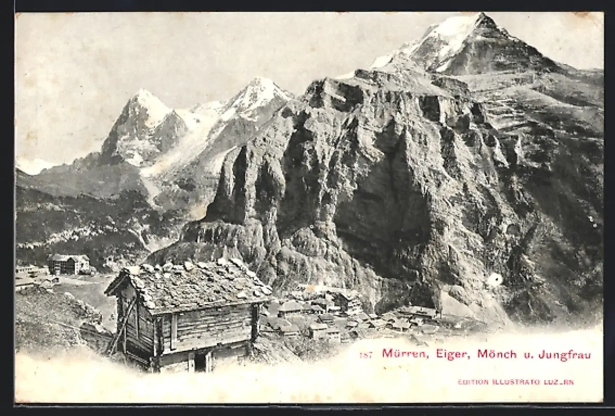 AK Mürren, Teilansicht mit Eiger, Mönch u. Jungfrau