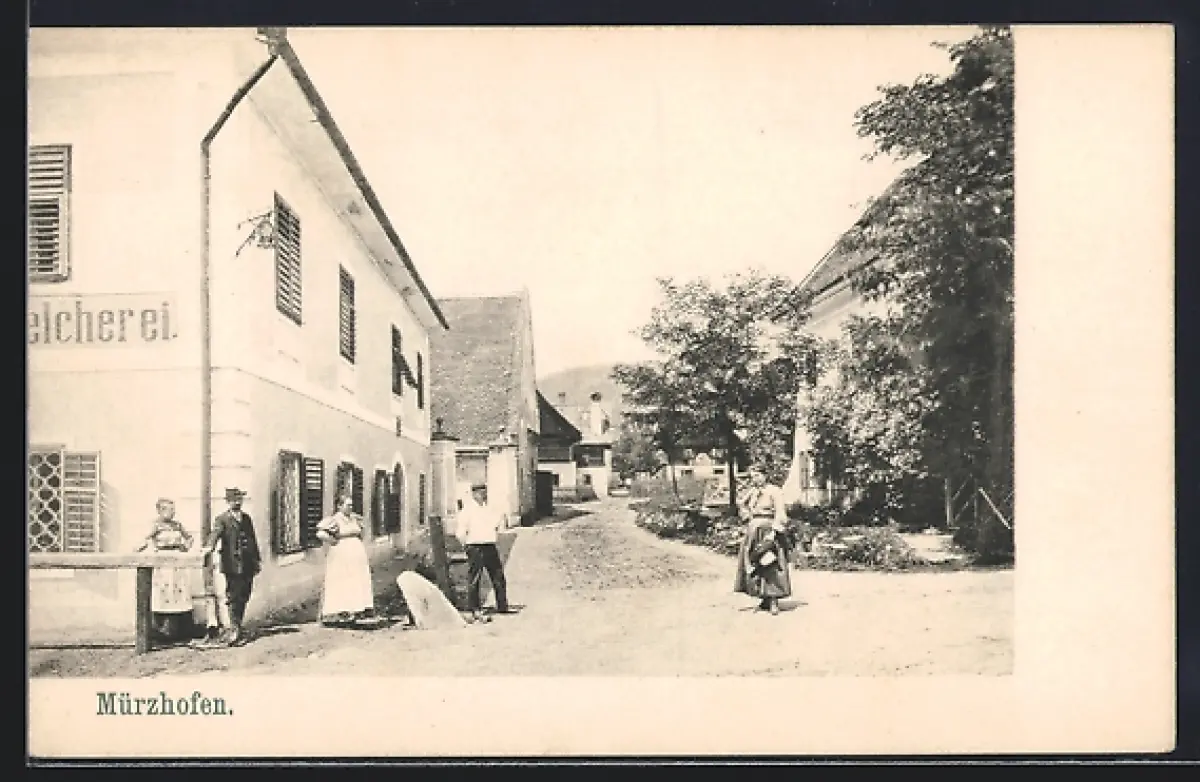 AK Mürzhofen, Strassenpartie mit Bewohnern