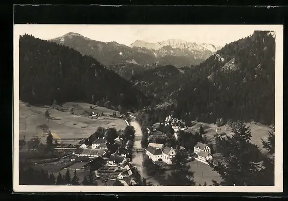 AK Mürzsteg, Totalansicht mit Gebirgspanorama