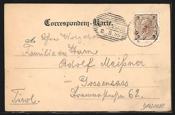 alte Ansichtskarte, gelaufen 1899, Stempelspur, guter Zustand