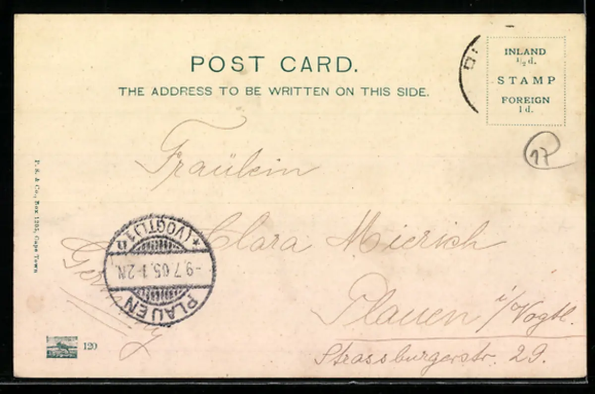 gelaufen 1905, Briefmarke entfernt, guter Zustand