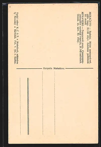 AK Mukacevo, Radnice, Blick von Anhöhe auf Häuser
