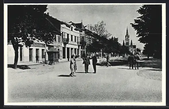 AK Mukacevo, Strassenpartie mit Blick zur Kirche