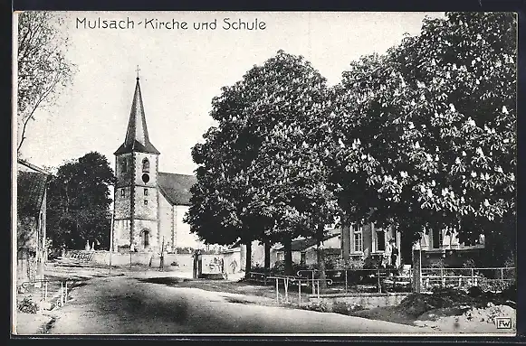 AK Mulsach, Partie mit Kirche und Schule im Sommer