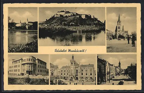 AK Munkács, Schloss, Rathaus, Strassenpartie