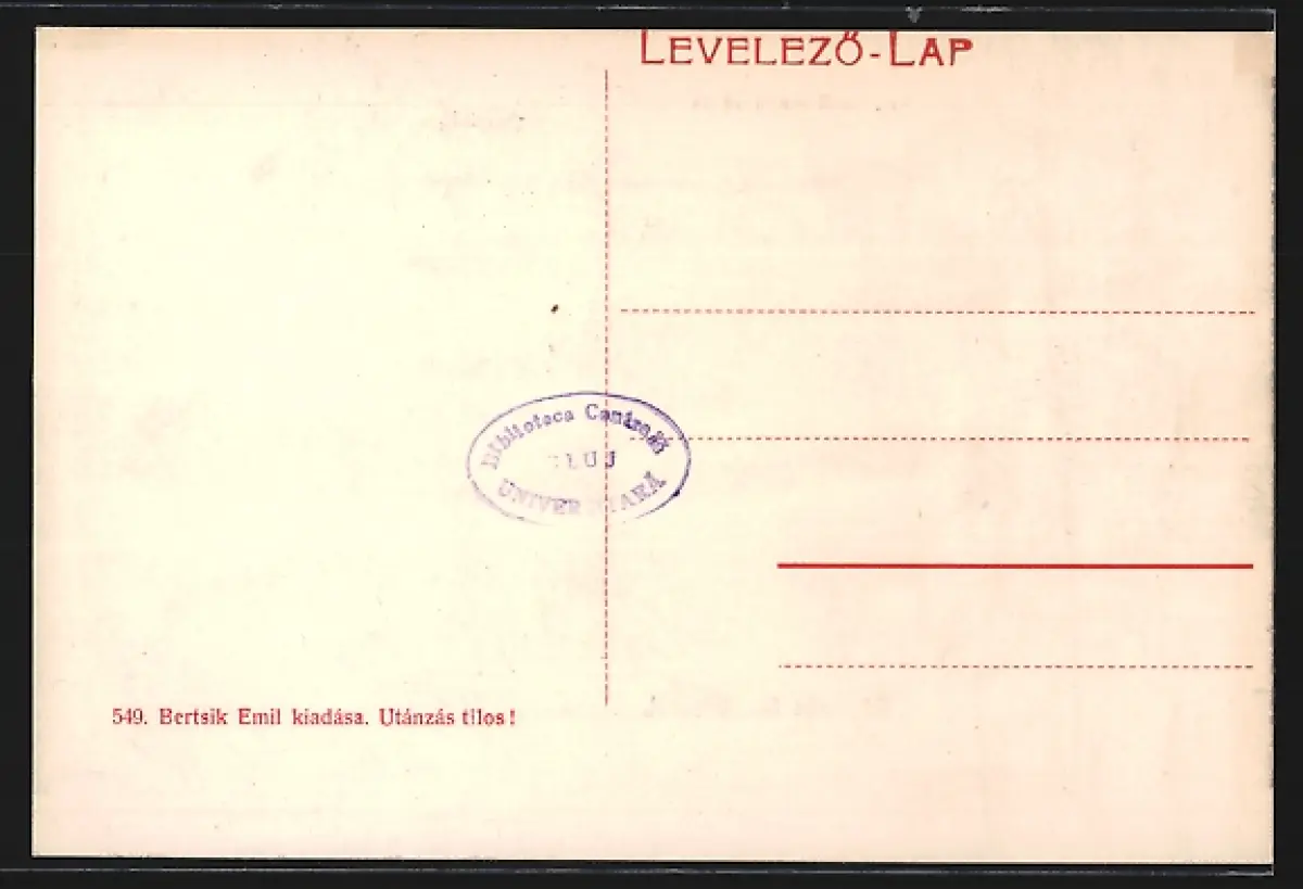Personenbezogene Daten auf der Rückseite der Karte wurden durch blauen Textmarker unkenntlich gemacht. Die blauen Stellen sind auf die Vorderseite durchgeweicht und wirken sich negativ auf das Postkartenfoto aus