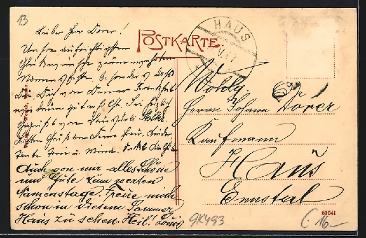 alte Ansichtskarte, gelaufen, Briefmarke entfernt, rückseitig Oberflächenschaden, sonst guter Zustand