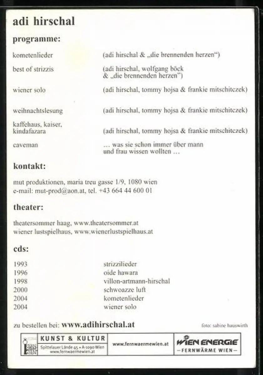 AK Musiker Adi Hirschal im Porträt, Autograph