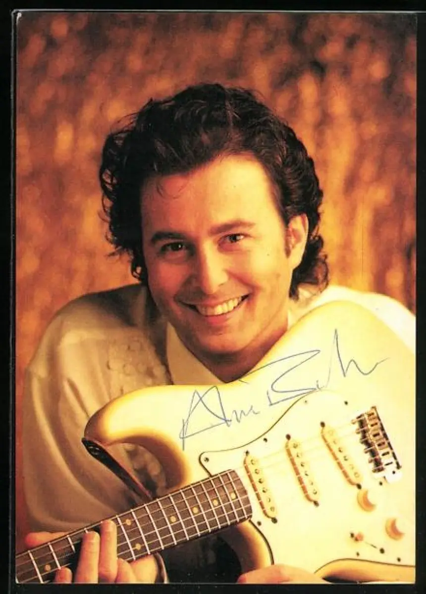 AK Musiker Alan Baker mit Gitarre, Autograph