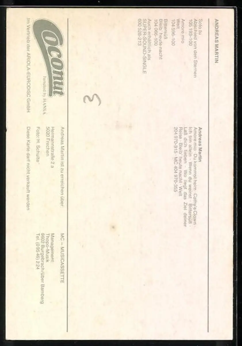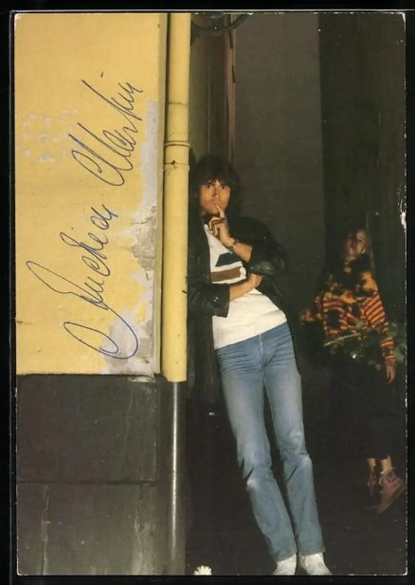 AK Musiker Andreas Martin an einer Wand lehnend, Autograph