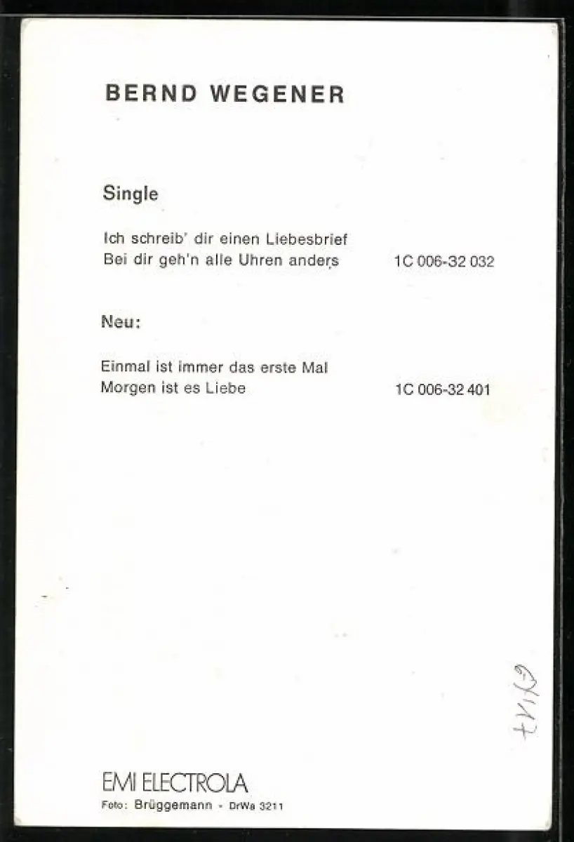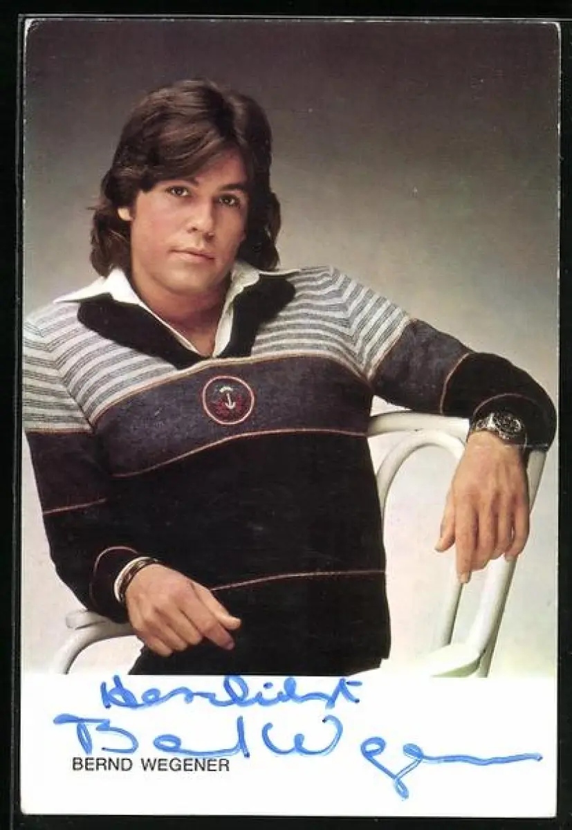 AK Musiker Bernd Wegener auf einem Stuhl sitzend, Autograph