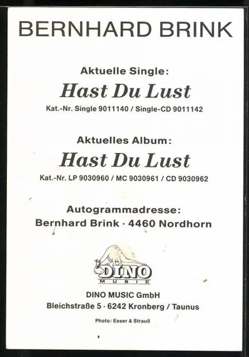 AK Musiker Bernhard Brink in Lederjacke, Autograph