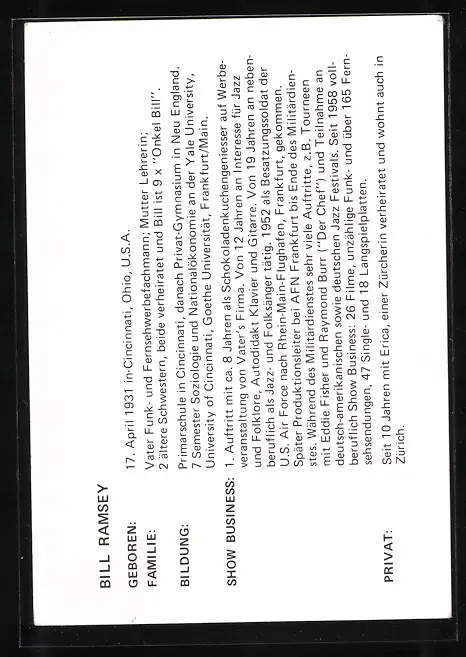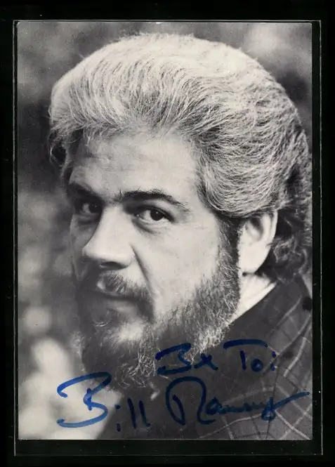 AK Musiker Bill Ramsey mit Bart über die Schulter blickend, Autograph