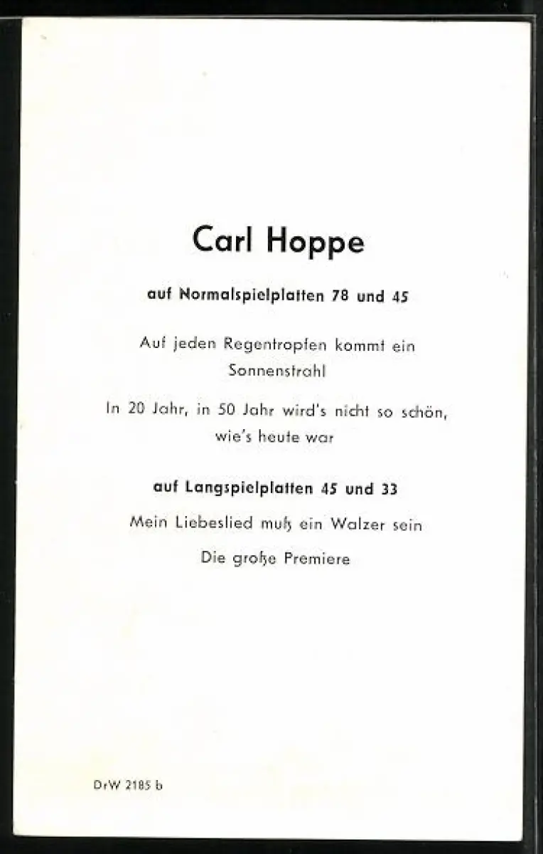 AK Musiker Carl Hoppe im Porträt, Autograph