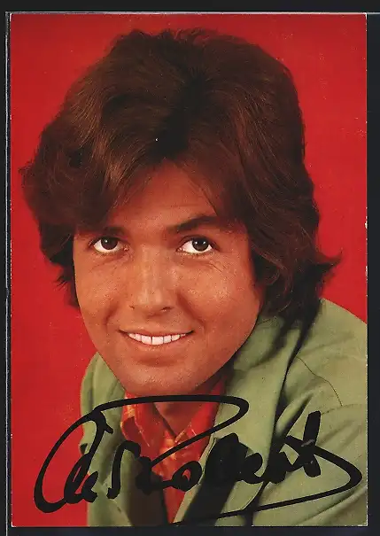 AK Musiker Chris Roberts vor rotem Hintergrund, Autograph