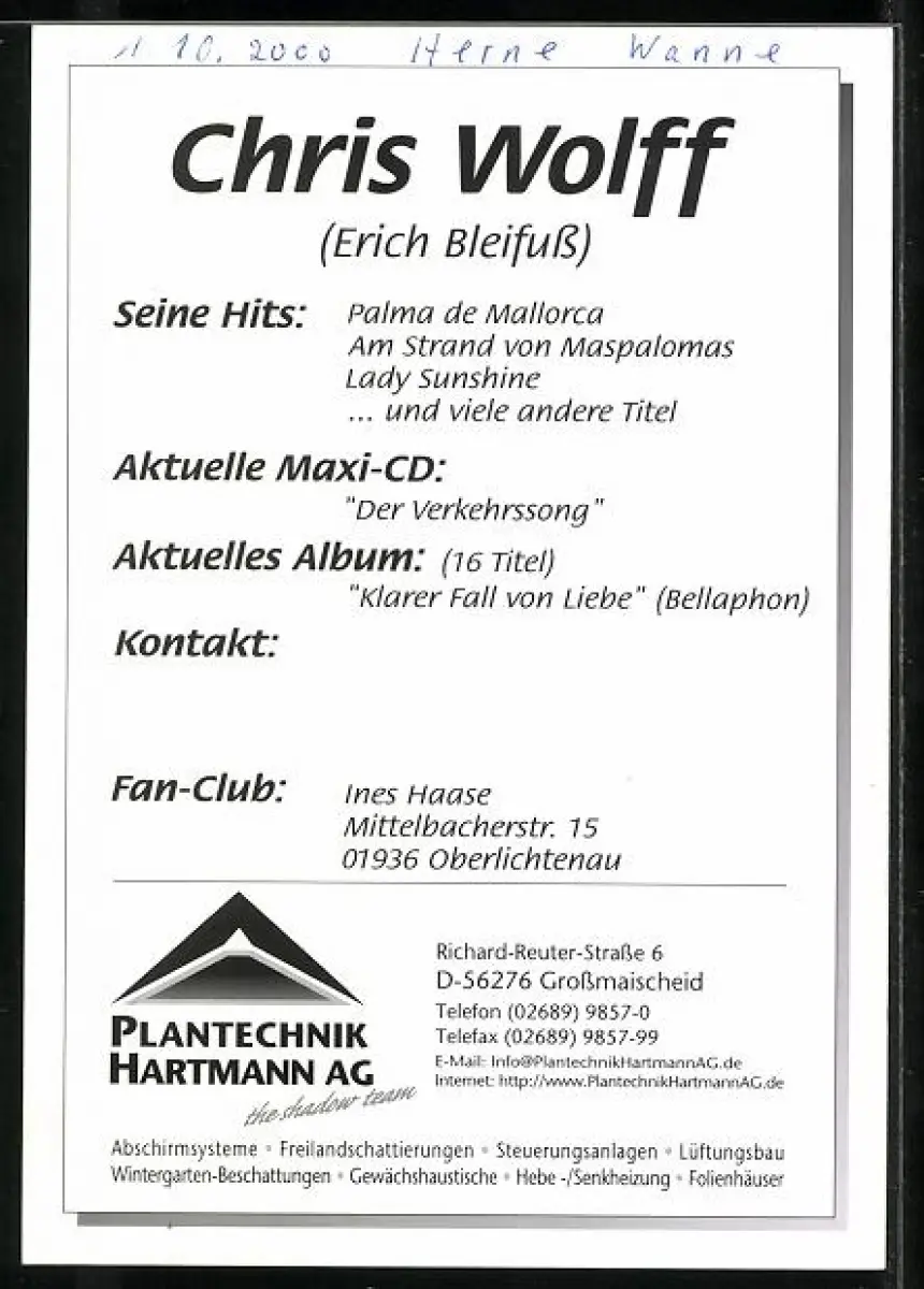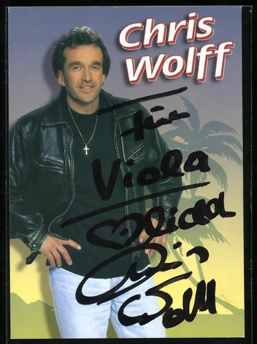 AK Musiker Chris Wolff in Lederjacke, Autograph