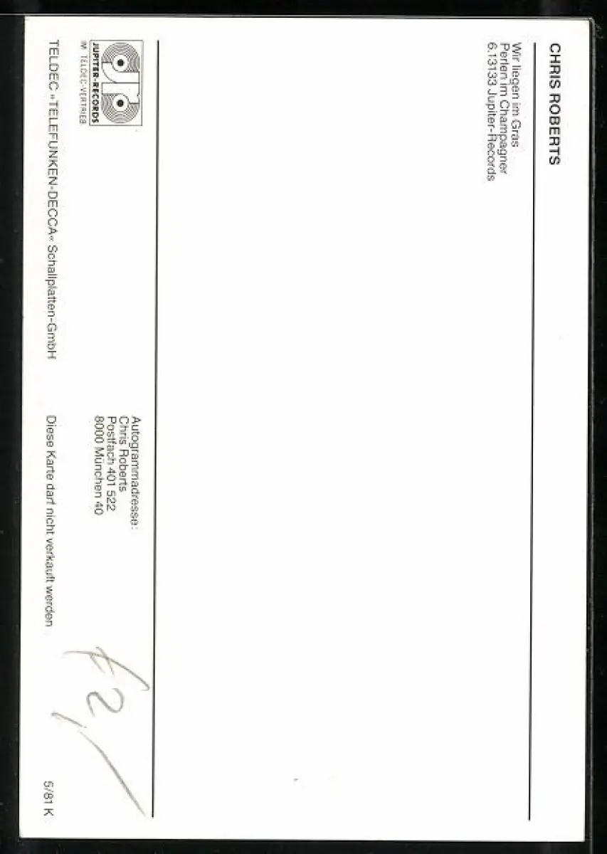 AK Musiker Christ Roberts in weisser Weste, Autograph