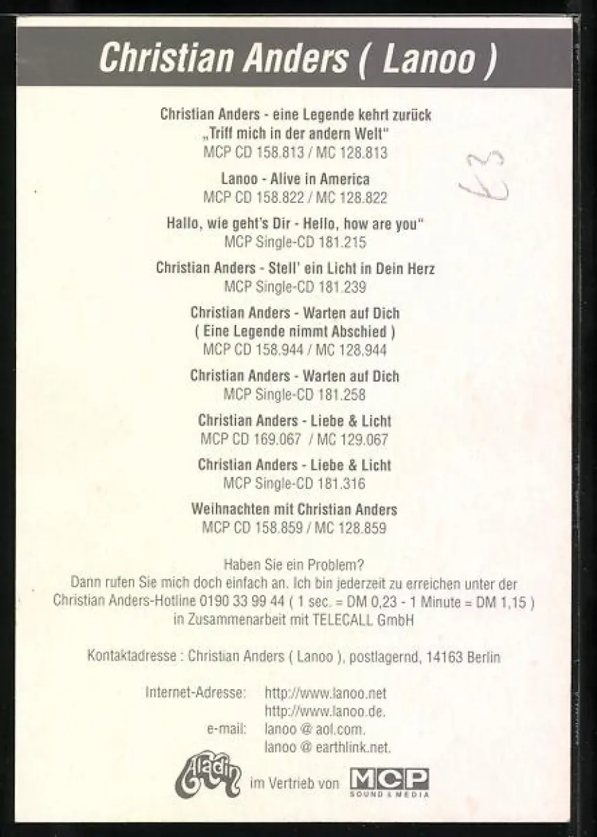 AK Musiker Christian Anders in blauem Hemd, Autograph
