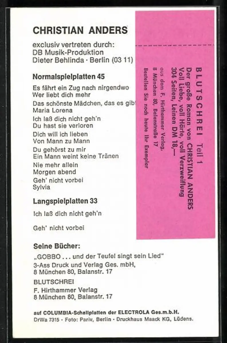AK Musiker Christian Anders mit Zigarillo porträtiert, Autograph