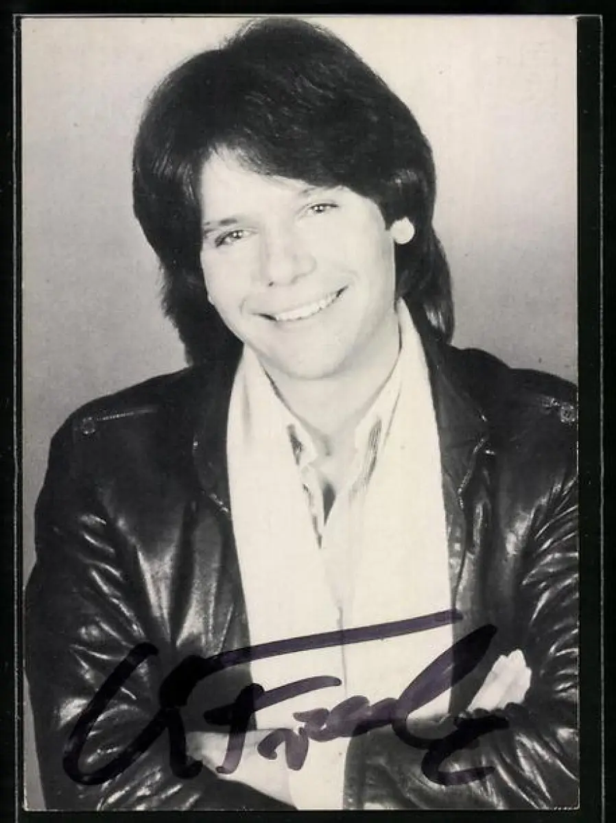 AK Musiker Christian Franke blickt lächelnd in die Kamera, Autograph