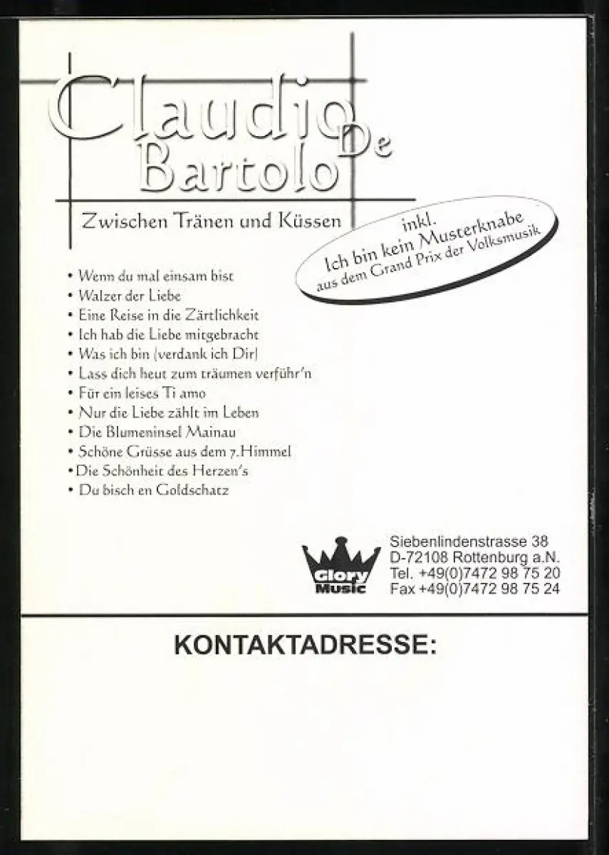 AK Musiker Claudio de Bartolo im Anzug, Autograph