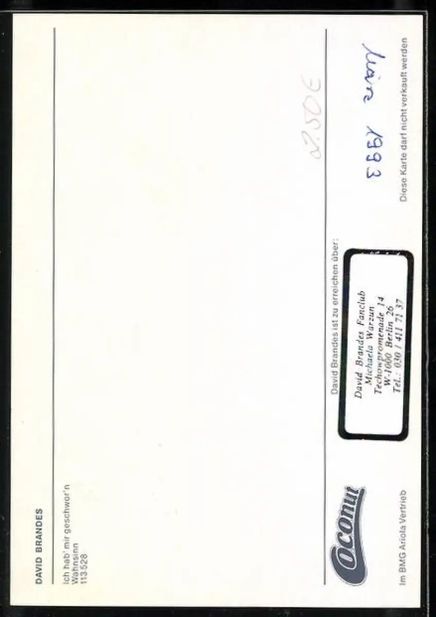 AK Musiker David Brandes vor blauem Hintergrund, Autograph