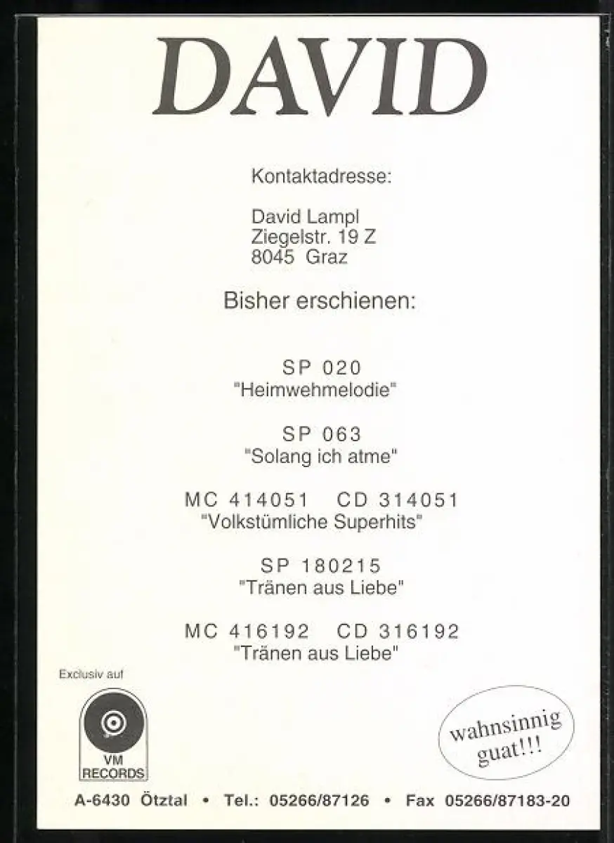 AK Musiker David mit schwarzer Lederjacke, Autograph