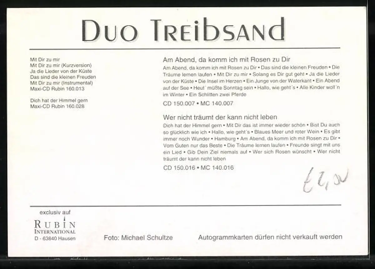 AK Musiker Duo Treibsand in blauen Hemden, Autographen