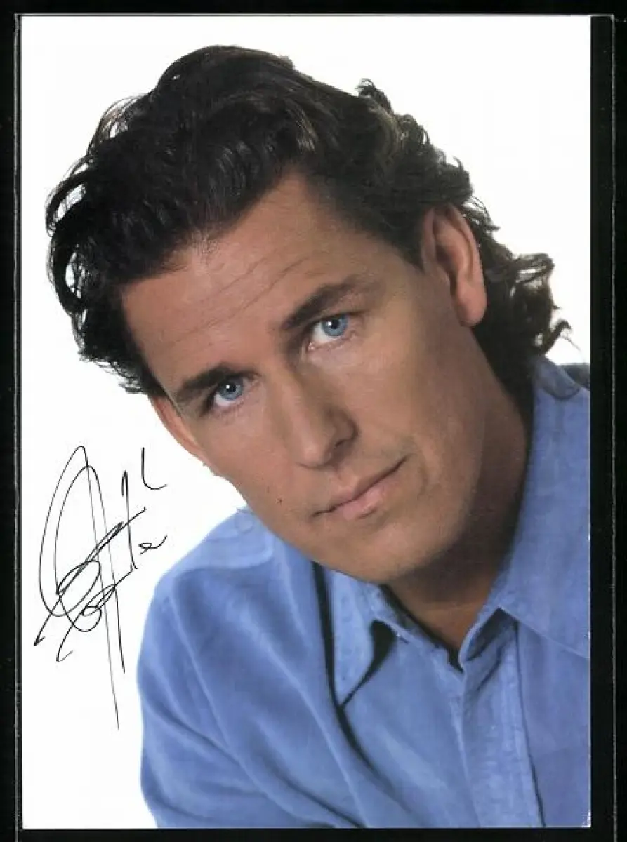AK Musiker Frank Galan in blauem Hemd, Autograph