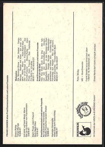 AK Musiker Frank Zander lächelnd im Porträt, Autograph