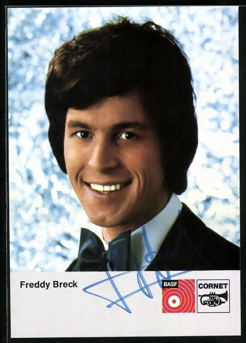 AK Musiker Freddy Breck lächelt charmant in die Kamera, Autograph