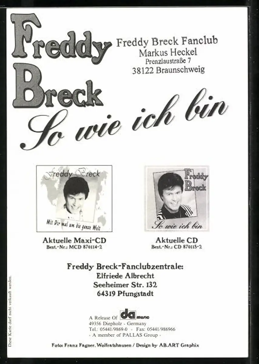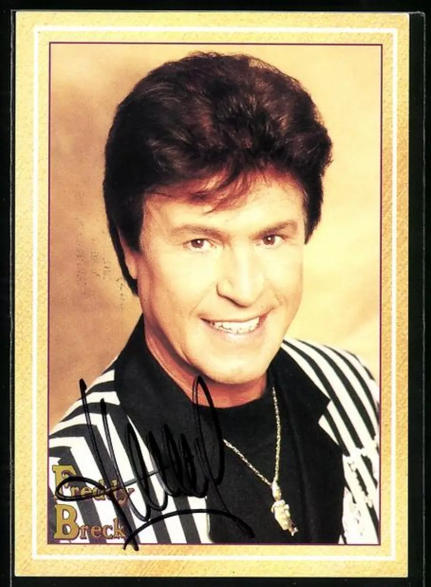 AK Musiker Freddy Breck lächelt den Betrachter an, Autograph