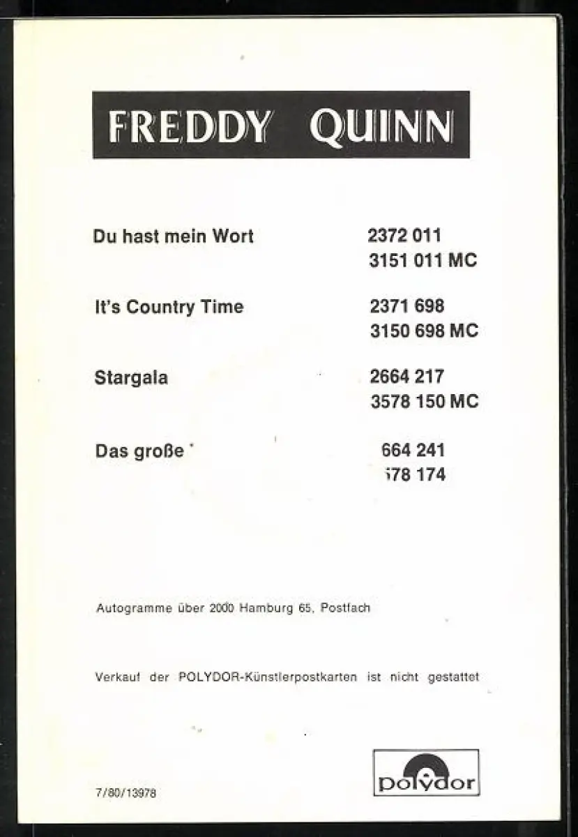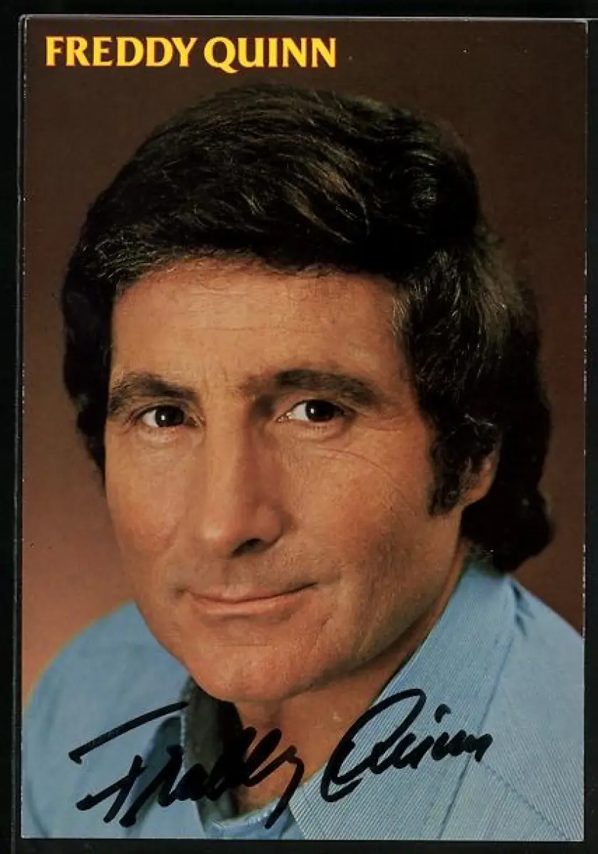 AK Musiker Freddy Quinn in blauem Hemd, Autograph