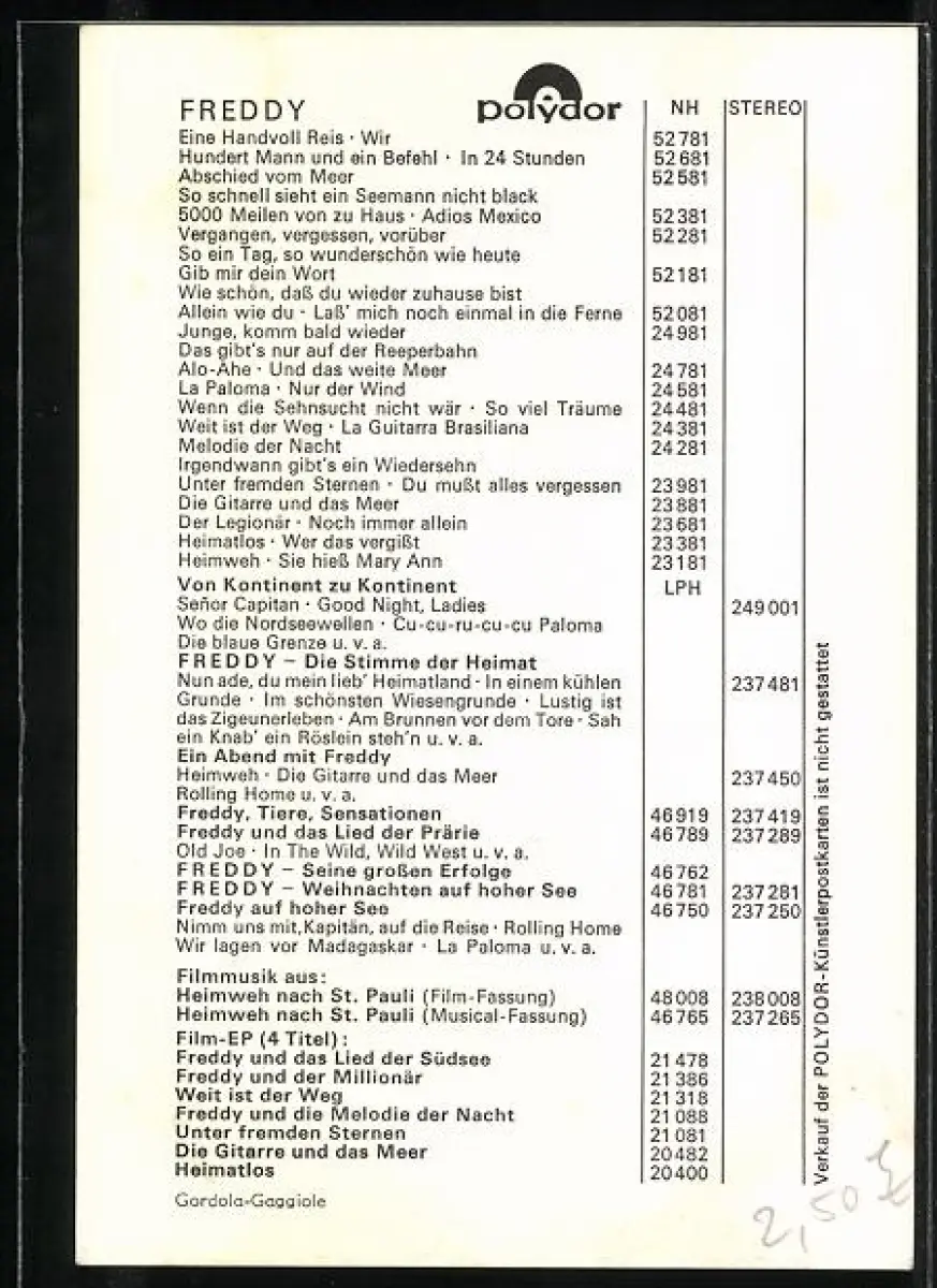 AK Musiker Freddy im Profil mit Autograph