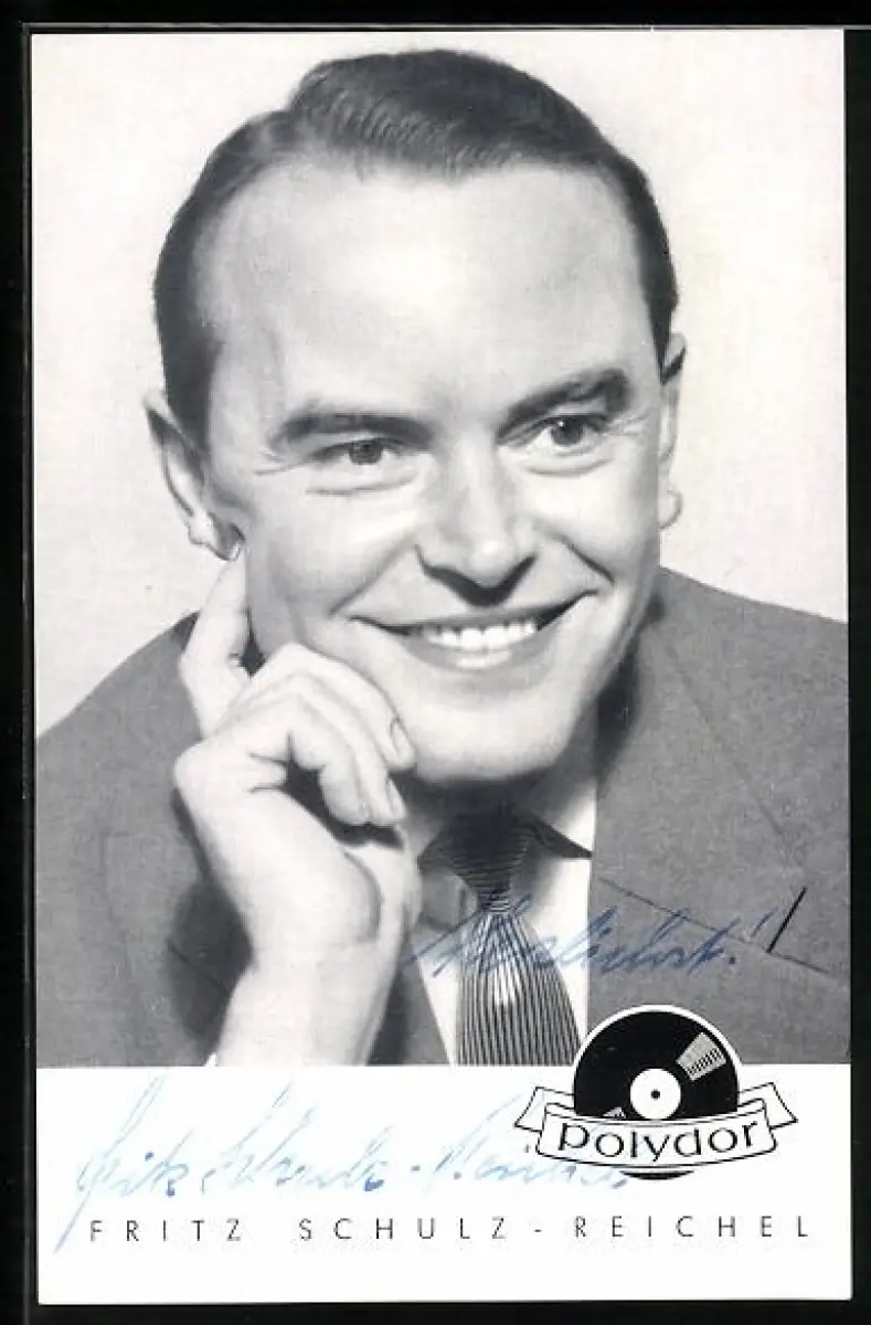 AK Musiker Fritz Schulz-Reichel lächelnd zur Seite schauend, Autograph