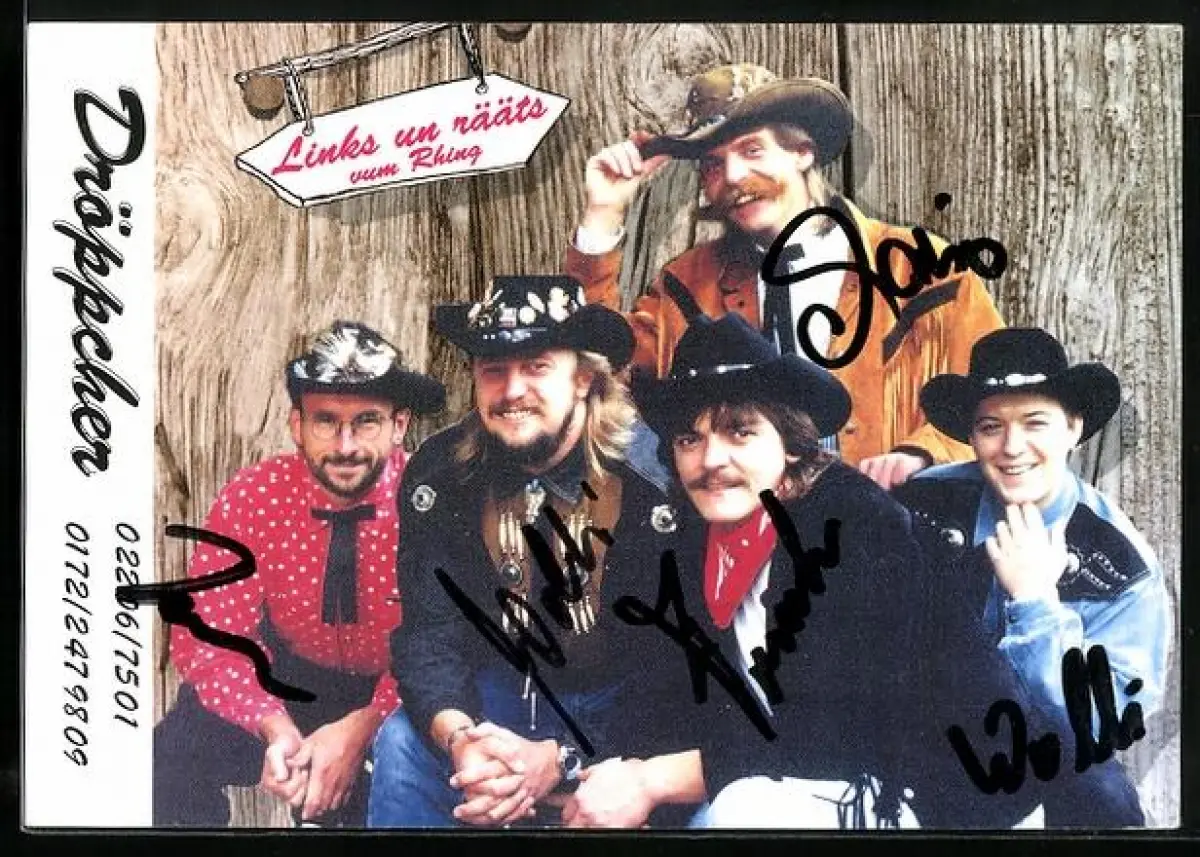 AK Musiker-Gruppe Dröppchen in Wild-West-Kleidung, Autograph