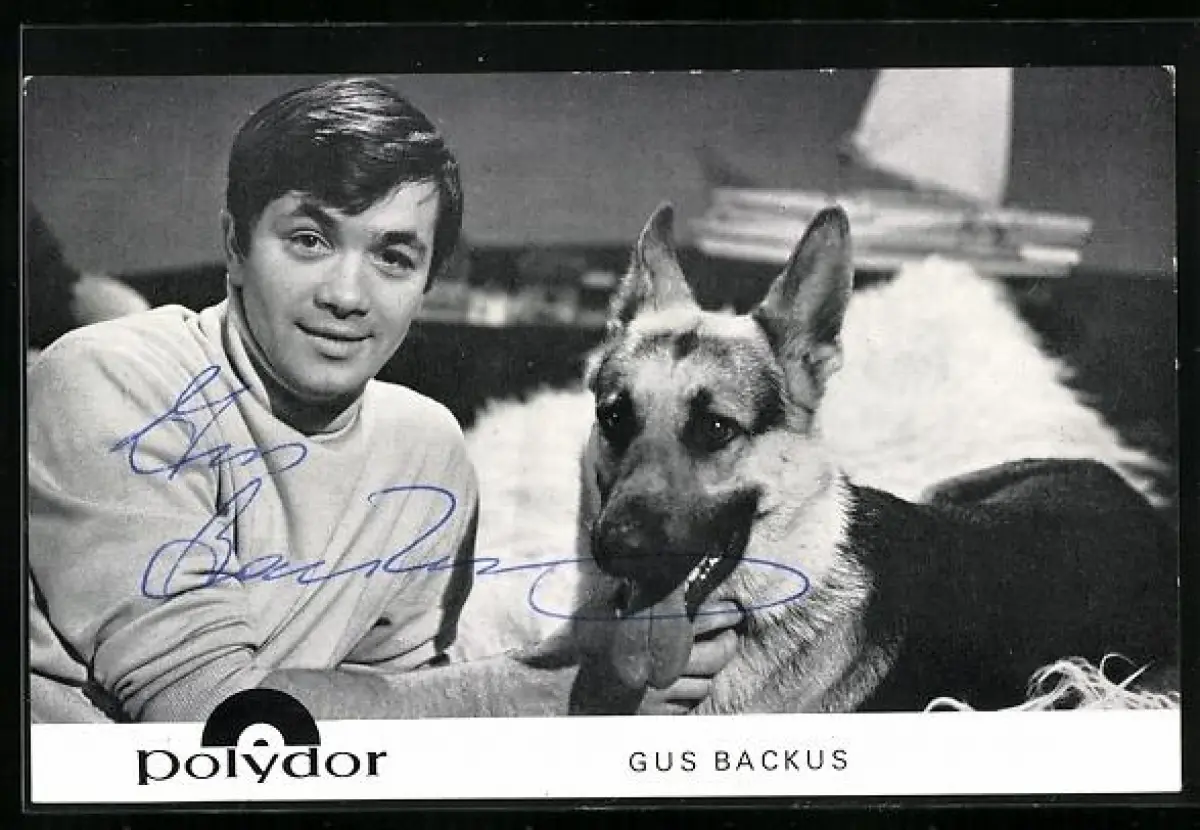 AK Musiker Gus Backus mit Schäferhund, Autograph