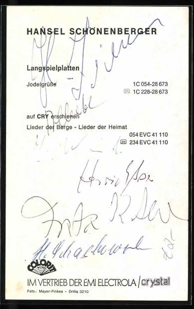 AK Musiker Hansel Schönenberger, Portrait in Tracht, Autograph