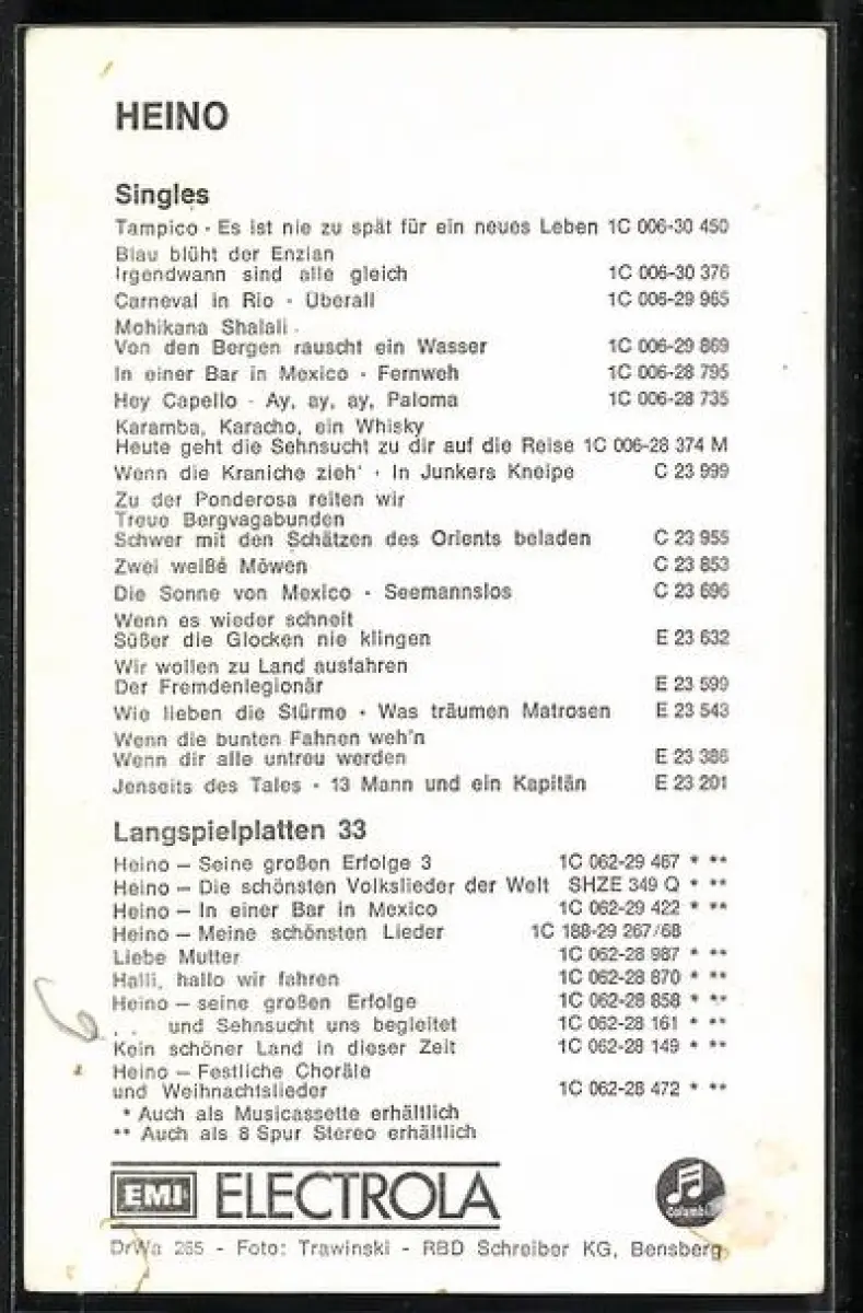 AK Musiker Heino mit Brille porträtiert, Autograph