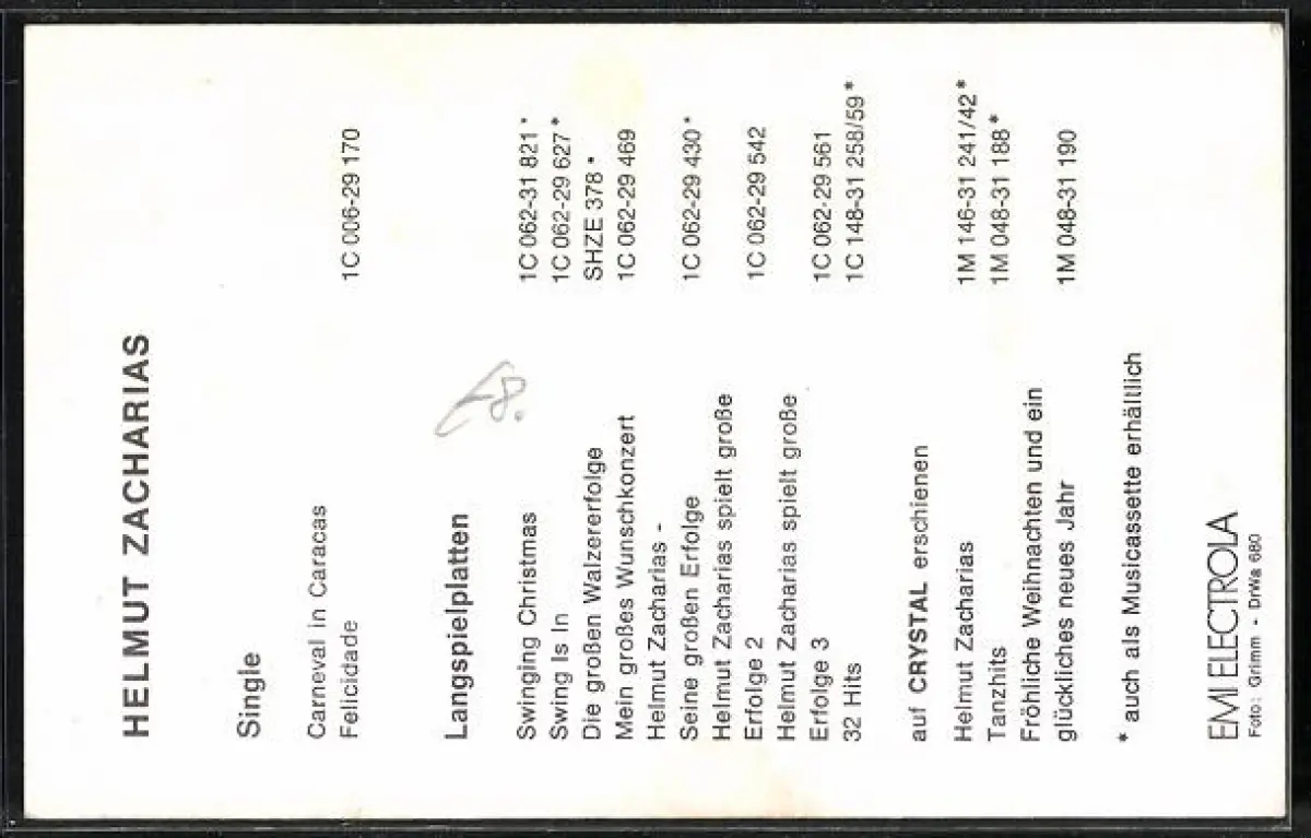 AK Musiker Helmut Zacharia spielt Geige, Autograph