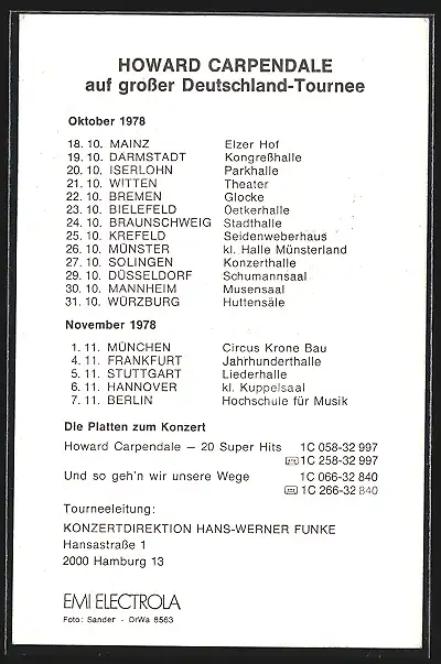 AK Musiker Howard Carpendale auf der Bühne, mit original Autograph
