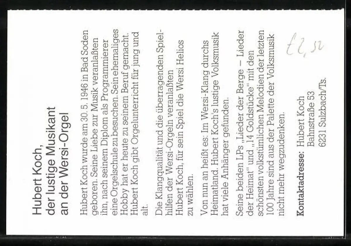 AK Musiker Hubert Koch mit seiner Wersi-Orgel, Autograph