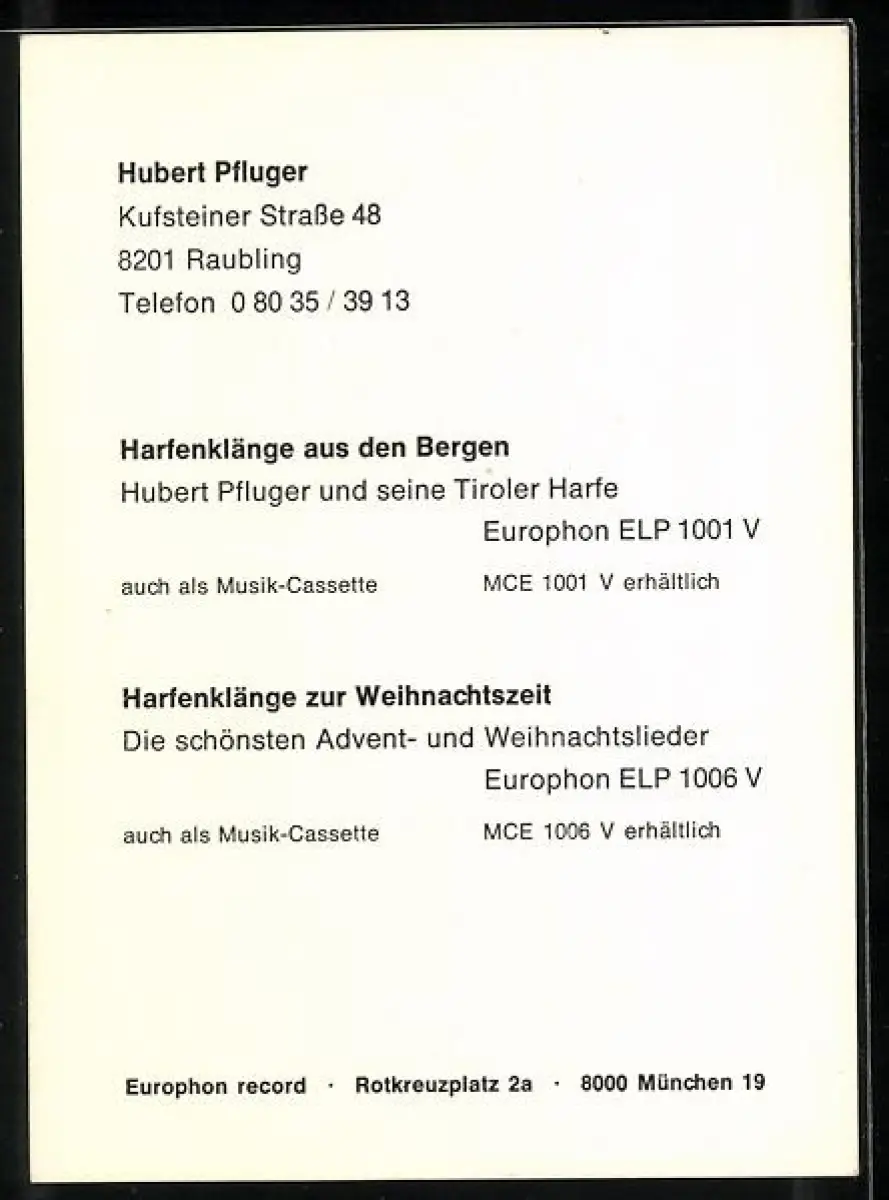 AK Musiker Hubert Pfluger mit Harfe, Autograph