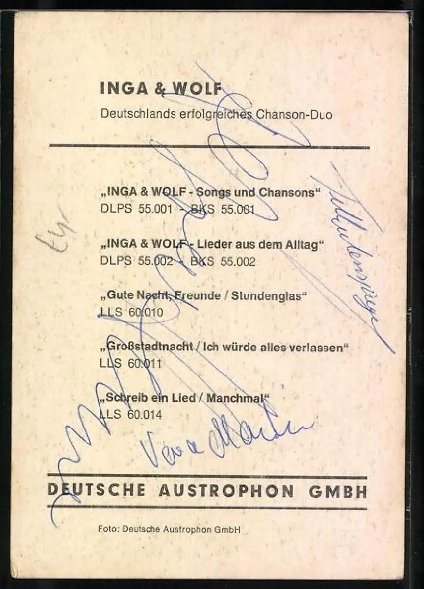 AK Musiker Inga & Wolf im Porträt, Autograph