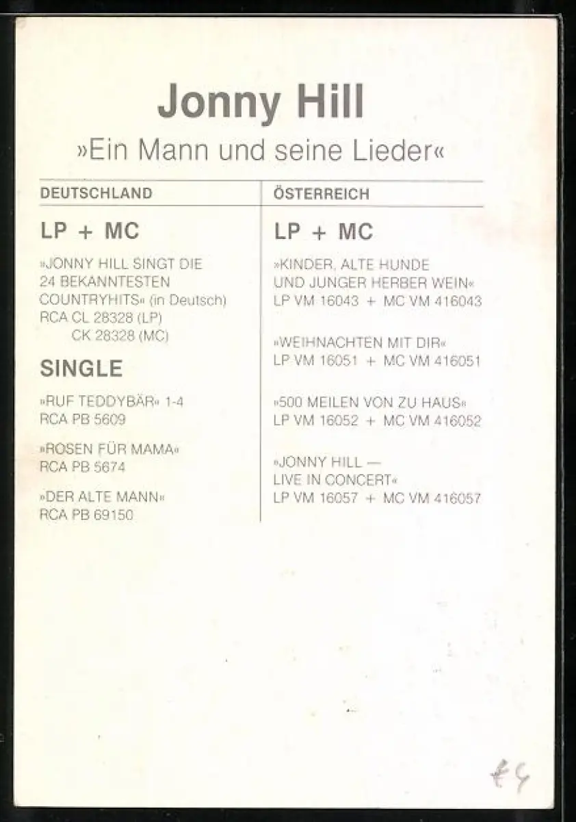 AK Musiker Johnny Hill im Westernhemd, Autograph