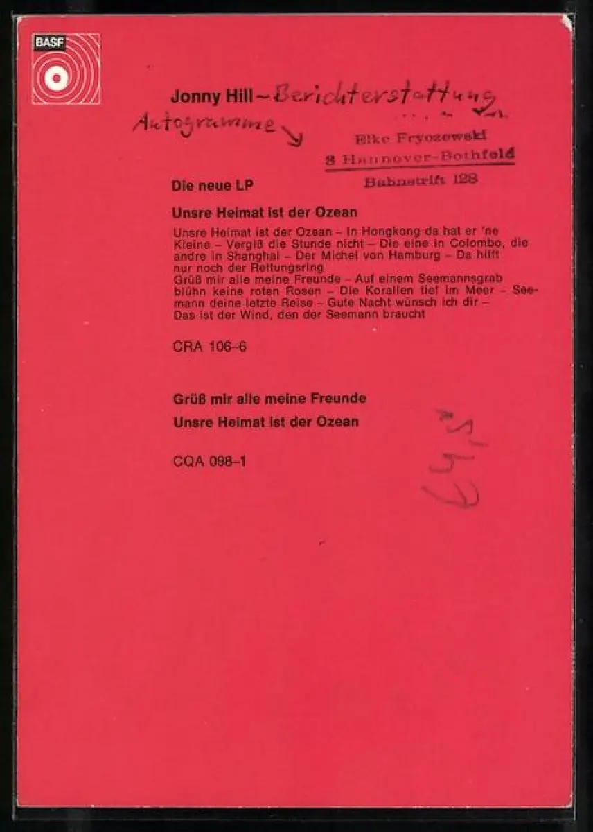 AK Musiker Jonny Hill im Porträt mit Autograph