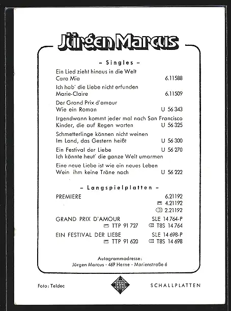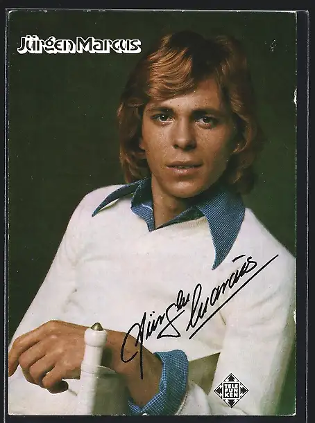 AK Musiker Jürgen Marcus in weissem Pullover, Autograph